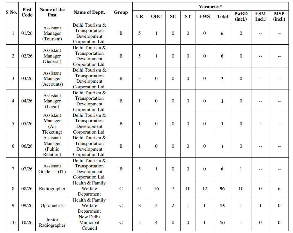 Delhi DSSSB Recruitment 2026 Vacancy: