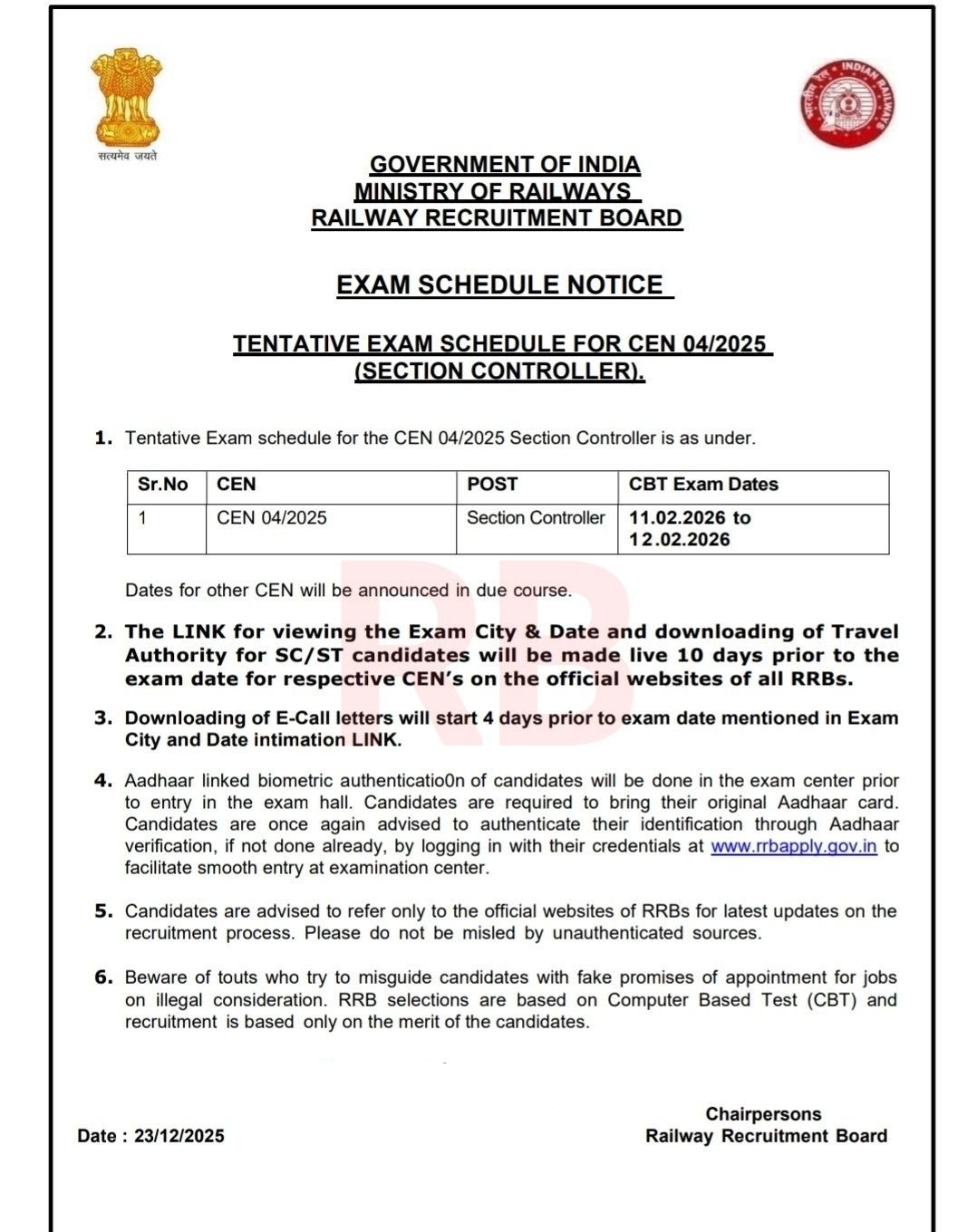 RRB Section Controller Admit Card 2026: The Railway Recruitment Board (RRB) is going to conduct the Section Controller Exam 2025. RRB has finally released the exam dates. The exam will be held on 11 & 12 February 2026. The Exam will be conducted in Shifts. Candidates who are going to appear in the exam are waiting for the Admit Card. The RRB will release the admit card in the month of February 2026.