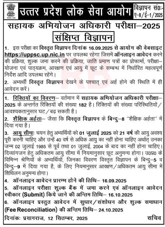 UPPSC Assistant Prosecution Officer Recruitment 2025 Apply Date: